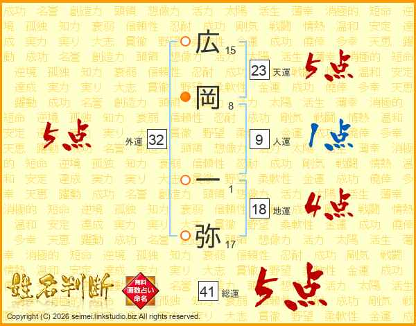 広岡一弥さんの外運は32画の5点!