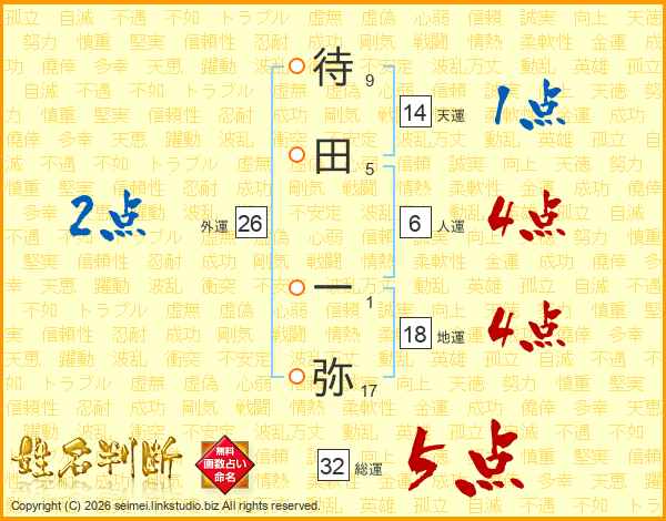 待田一弥さんの総運は32画の5点!