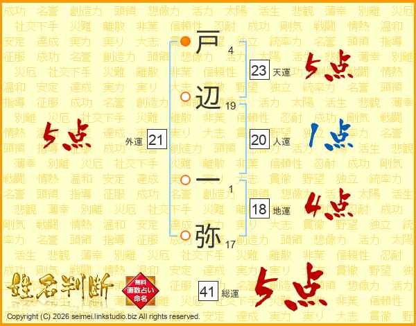 戸辺一弥さんの総運は41画の5点!