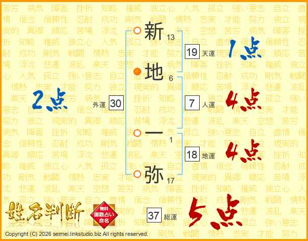 新地一弥さんの総運は37画の5点!