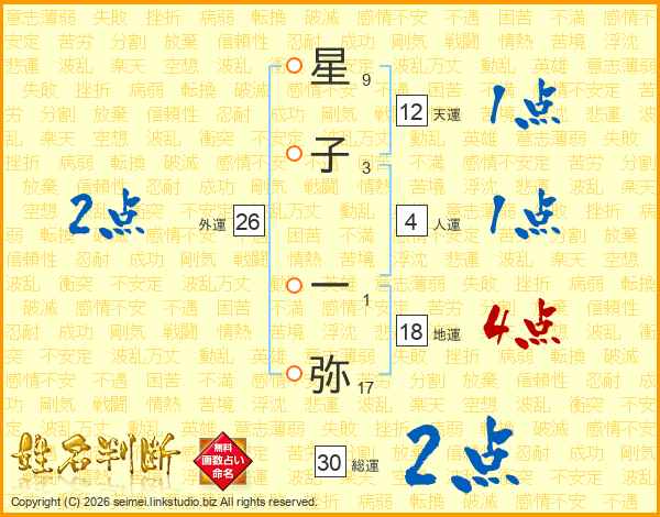 星子一弥さんの外運は26画の2点!