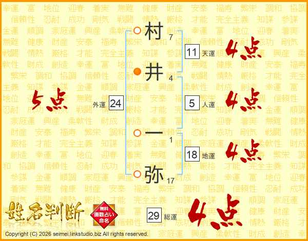 村井一弥さんの総運は29画の4点!
