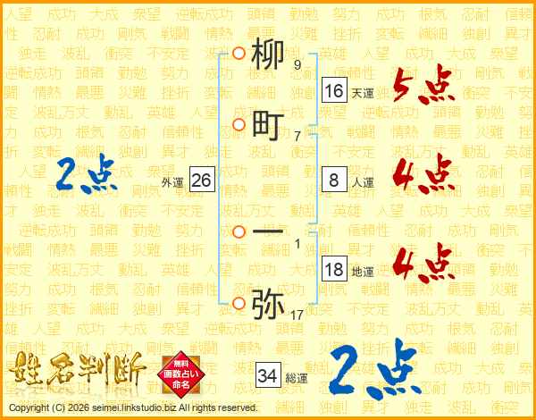 柳町一弥さんの総運は34画の2点!