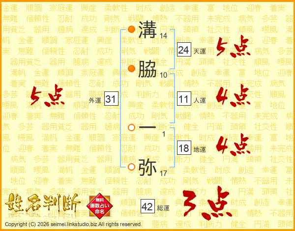溝(14画)脇(10画) 一(1画)弥(17画)