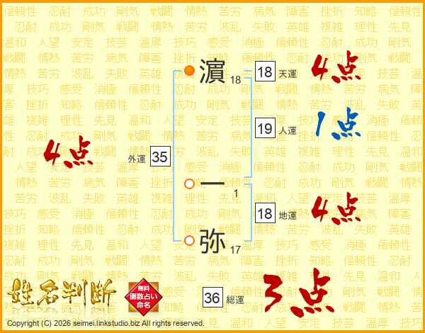 画数の奇数(○陽)と偶数(●陰)の配列で吉凶を占います。どちらかにかたよる名前は大凶名で避ける必要があります。画数の奇数偶数。