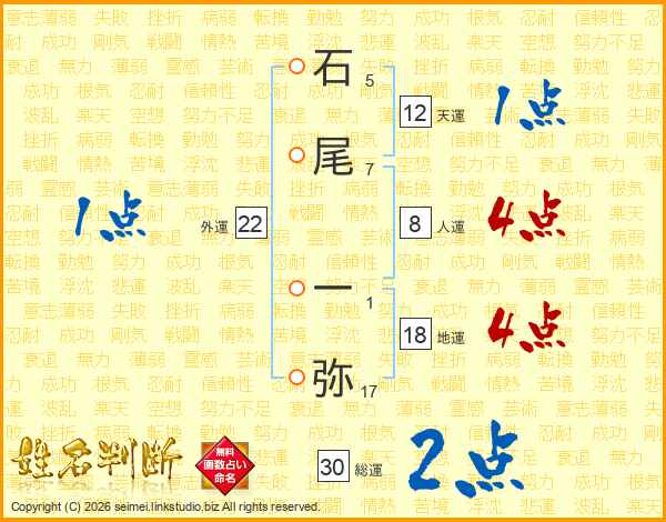 石尾一弥さんの総運は30画の2点!