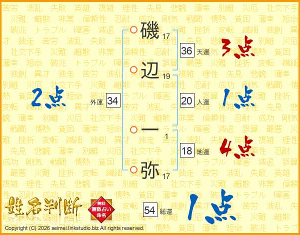 磯辺一弥さんの総運は54画の1点!