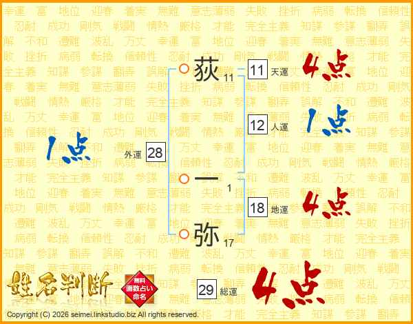 荻一弥さんの総運は29画の4点!