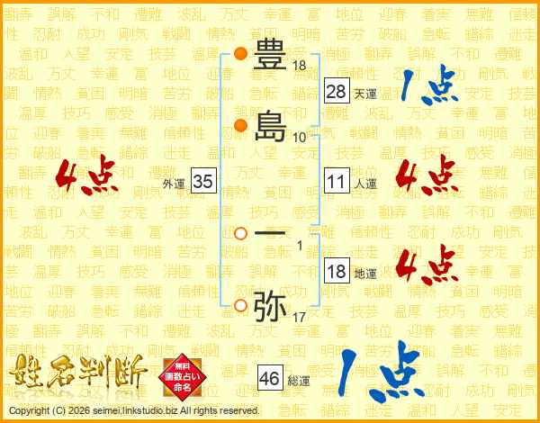 豊(18画)島(10画) 一(1画)弥(17画)