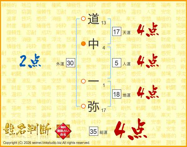 道中一弥さんの総運は35画の4点!