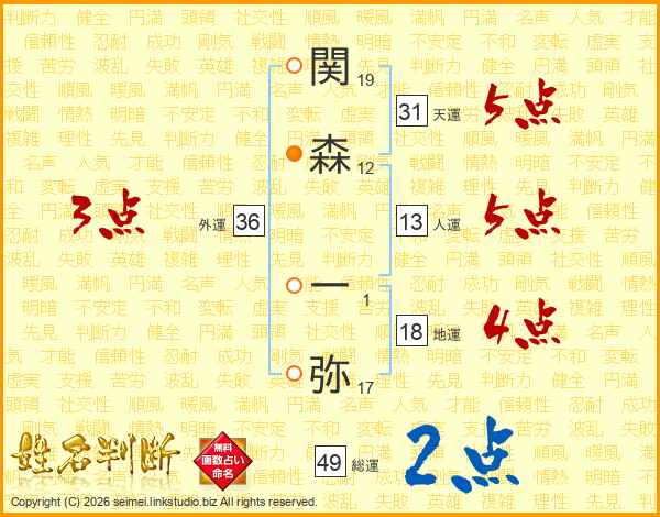 関森一弥さんの外運は36画の3点!