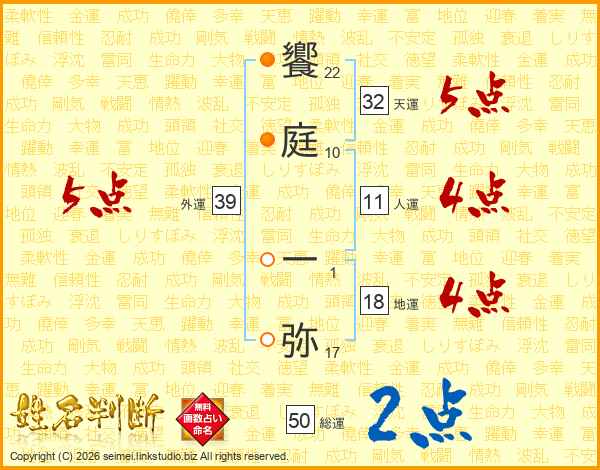 饗庭一弥さんの外運は39画の5点!