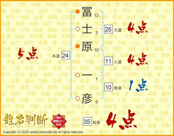 冨士原一彦さんの天運は25画の4点!