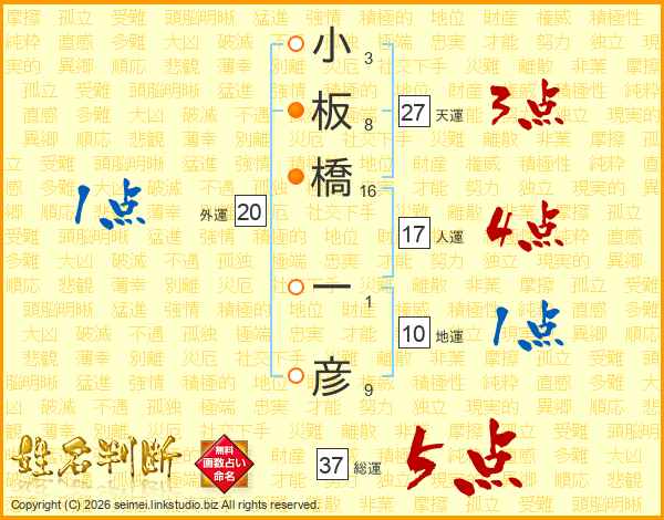 小板橋一彦さんの総運は37画の5点!