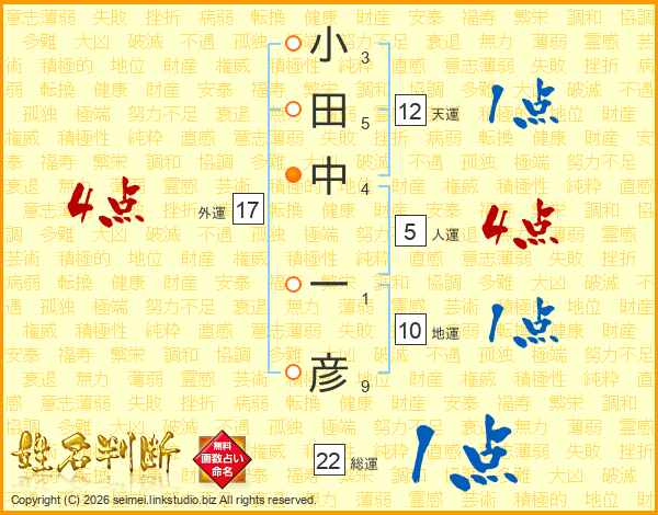 小田中一彦さんの外運は17画の4点!