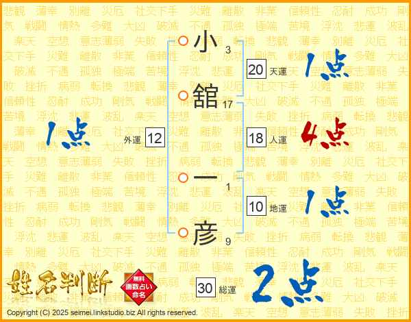 小舘一彦さんの総運は30画の2点!