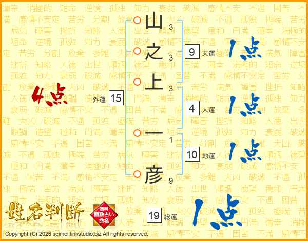 山之上一彦さんの総運は19画の1点!