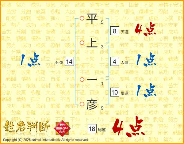 平上一彦さんの総運は18画の4点!
