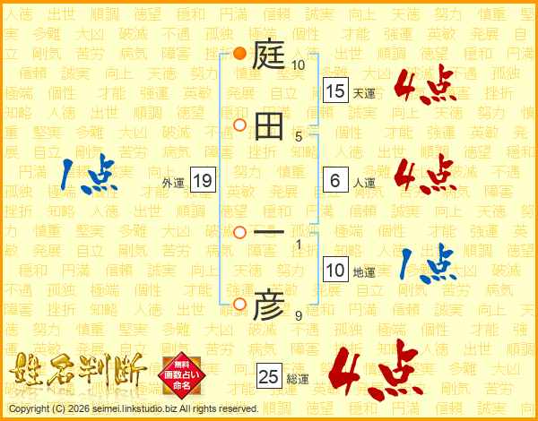 庭田一彦さんの総運は25画の4点!