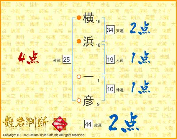横浜一彦さんの総運は44画の2点!