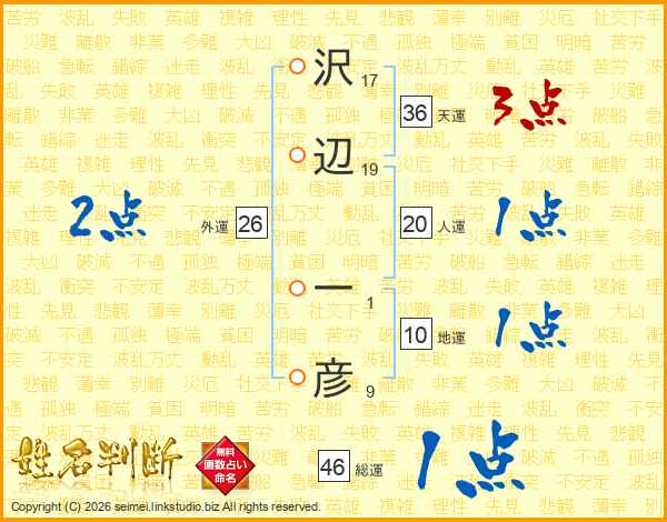 沢辺一彦さんの総運は46画の1点!