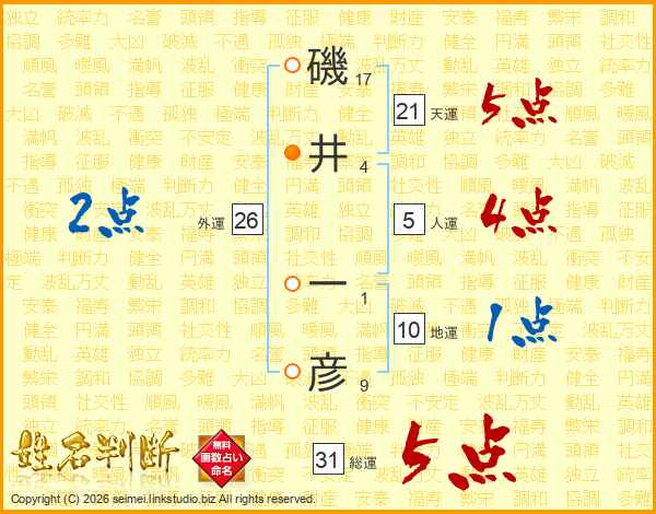磯井一彦さんの総運は31画の5点!