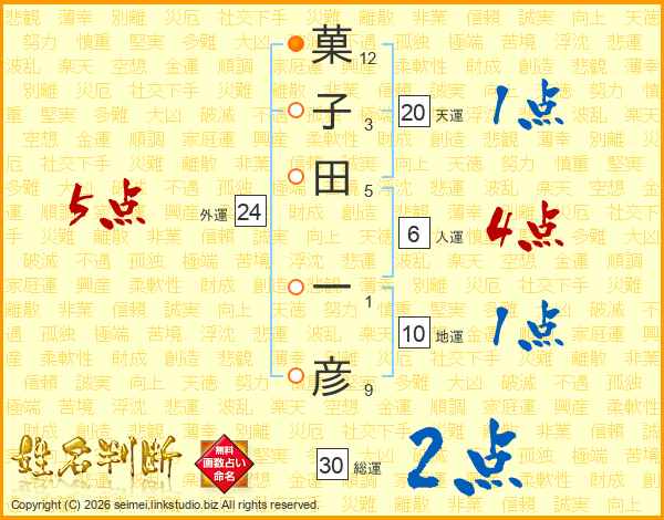 菓子田一彦さんの総運は30画の2点!