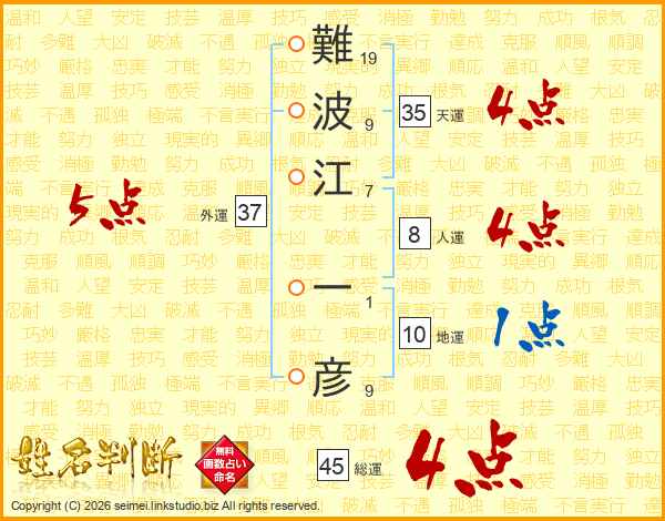 難波江一彦さんの総運は45画の4点!