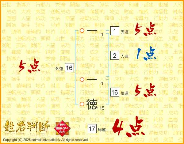 一一徳さんの総運は17画の4点!