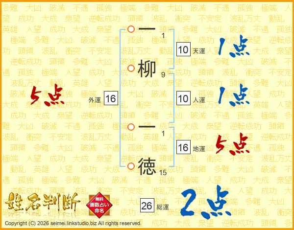 一柳一徳さんの総運は26画の2点!