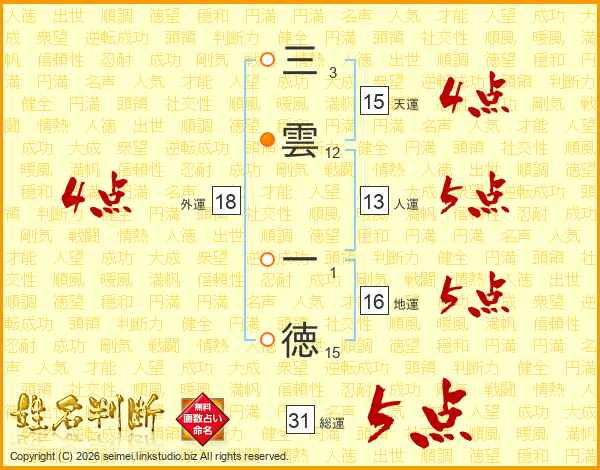 三雲一徳さんの総運は31画の5点!