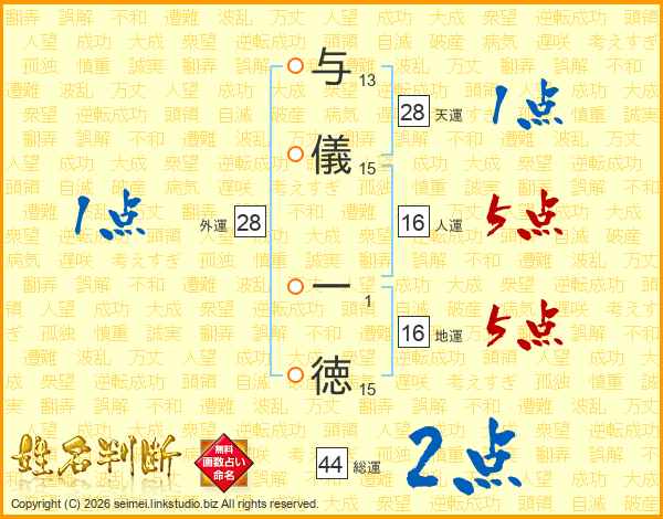 与儀一徳さんの総運は44画の2点!