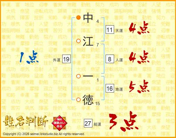 中江一徳さんの総運は27画の3点!