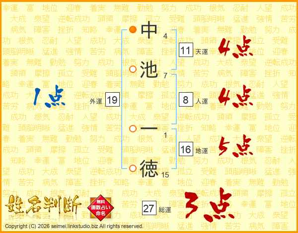中池一徳さんの総運は27画の3点!