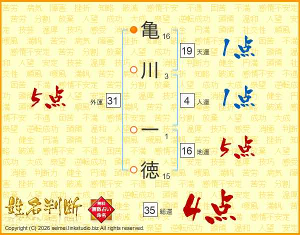 亀川一徳さんの総運は35画の4点!
