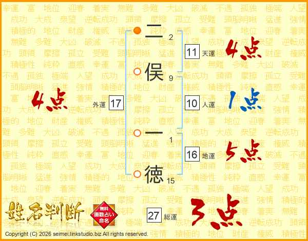 二俣一徳さんの総運は27画の3点!