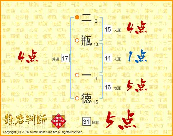 二瓶一徳さんの天運は15画の4点!