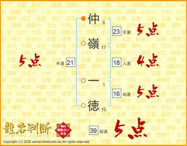 仲嶺一徳さんの総運は39画の5点!