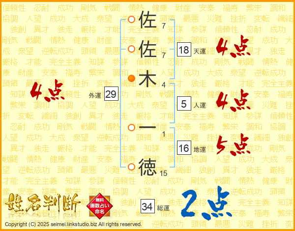 佐(7画)佐(7画)木(4画) 一(1画)徳(15画)