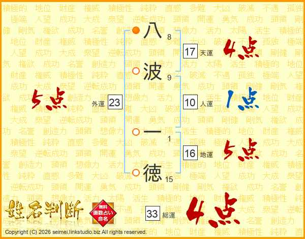 八波一徳さんの総運は33画の4点!