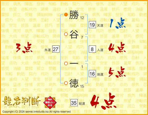 勝谷一徳さんの総運は35画の4点!