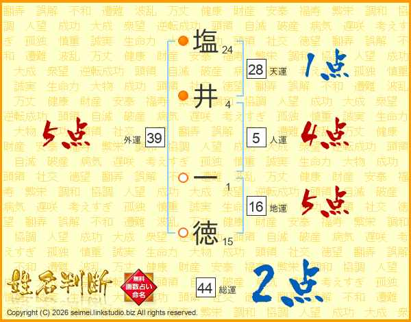 塩(24画)井(4画) 一(1画)徳(15画)