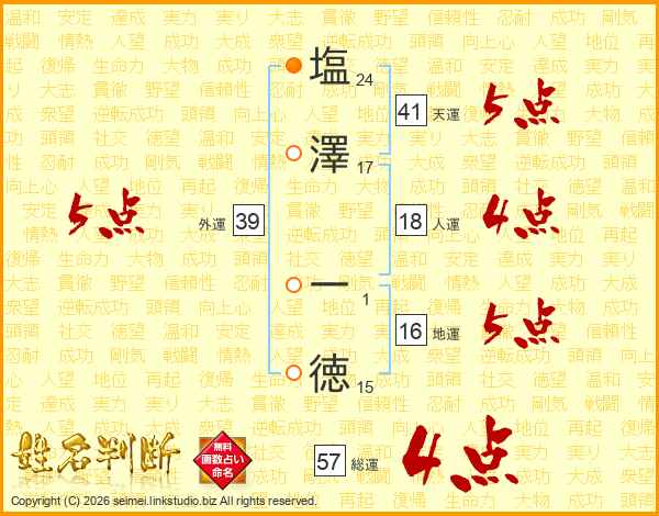 塩(24画)澤(17画) 一(1画)徳(15画)