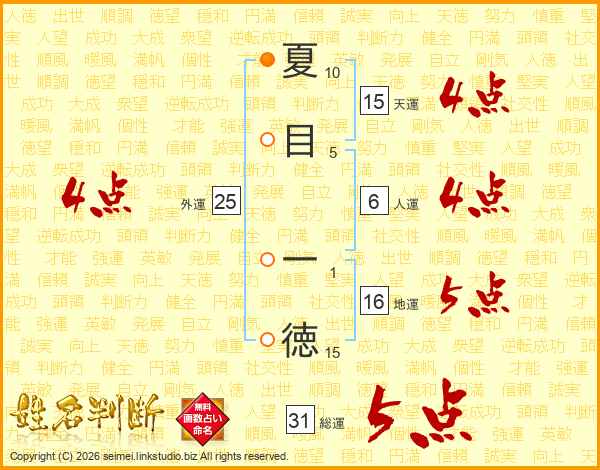 夏目一徳さんの総運は31画の5点!