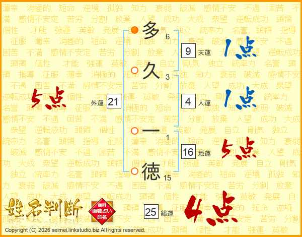 多久一徳さんの総運は25画の4点!