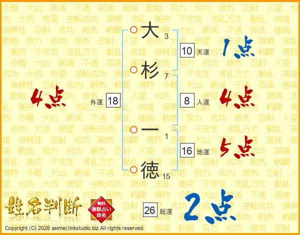 大杉一徳さんの総運は26画の2点!
