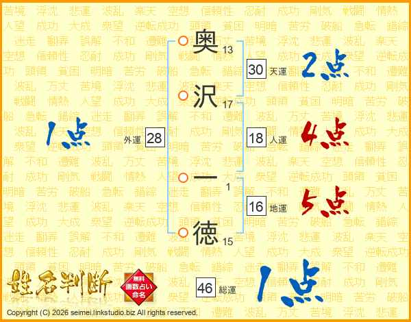 奥沢一徳さんの総運は46画の1点!