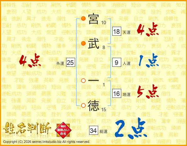 宮武一徳さんの天運は18画の4点!