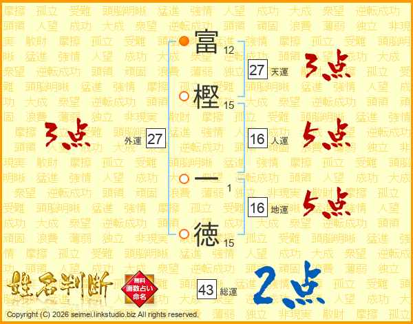 富樫一徳さんの総運は43画の2点!