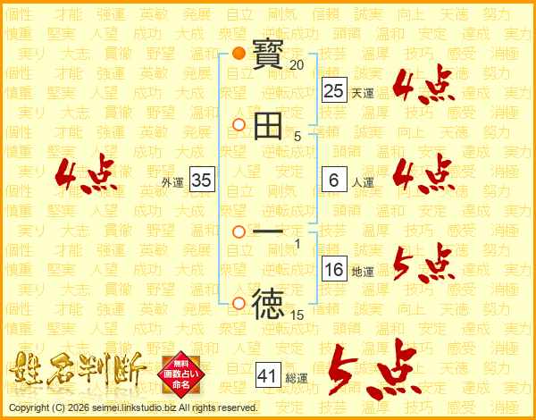 寳田一徳さんの天運は25画の4点!